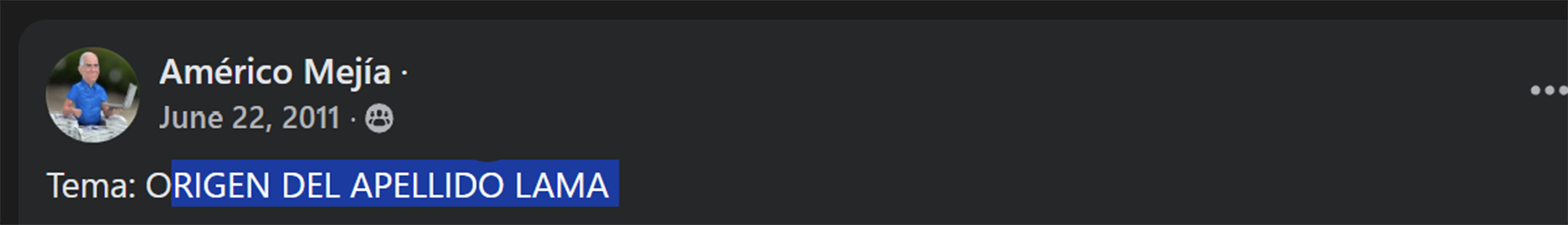 “Un joven de nombre Mikhail, que era hijo del señor Khalil - hombre ciego procedente de Beit Jala- que lo apodaban con el sobrenombre de Laama, palabra que del árabe traduce “el ciego” (al amma). Por consiguiente, al joven lo llamaban Mikhail Laama. Él fue forzado a evacuar el pueblo de Beit Jala con todos sus familiares, por motivo de un sangriento conflicto, y se refugió en el pueblo hermano de Belén. Con el tiempo, el sobrenombre de Laama se convirtió en el apellido de Mikhail”.